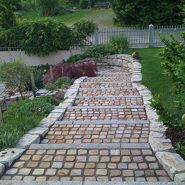 Ein Weg ist nicht nur eine Notwenigkeit, sondern ein wichtiges Gestaltungselement im Garten. Wählen Sie dabei aus einer Vielzahl von Möglichkeiten. Pflaster oder Platten aus Natur- oder Betonstein als geschlossene oder wasserdurchlässige Fläche. Hier lassen sich verschiedene Materialien auch reizvoll miteinander kombinieren.